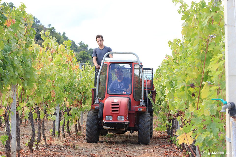 Saluto il cantiniere della tenuta, Marco Romagnoli, e continuo il mio itinerario fotografico. Passato qualche chilometro, finisco nei possedimenti delle Terre Bianche dove anche loro stanno vendemmiando a tutta andare.